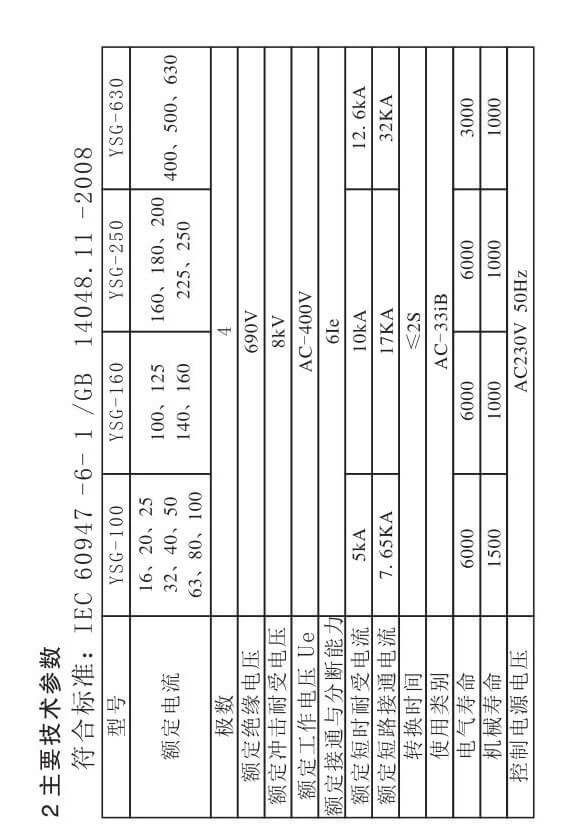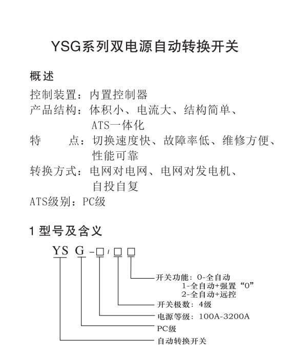 YSG-125/4P双电源自动转换开关